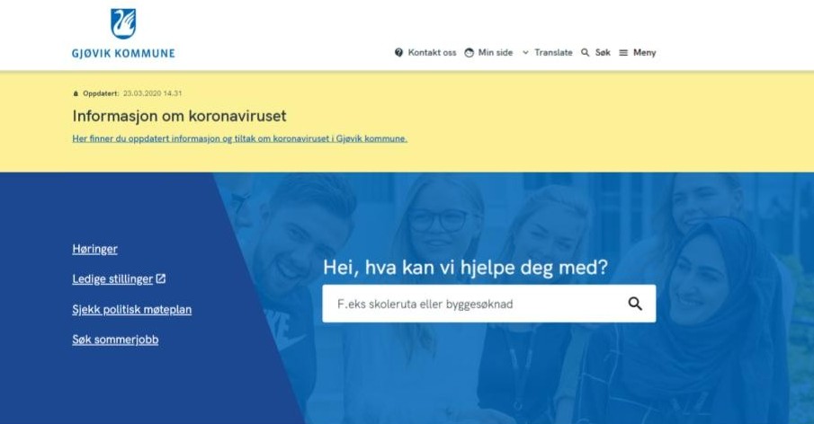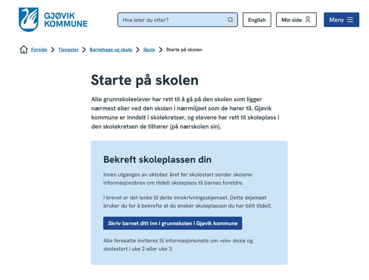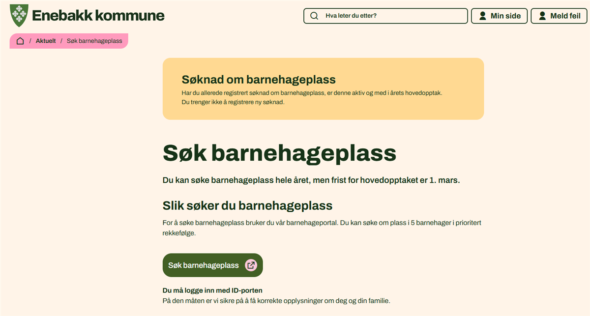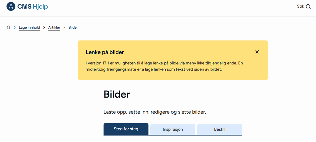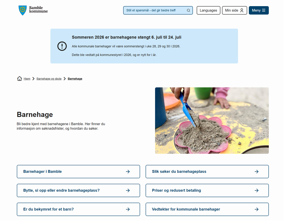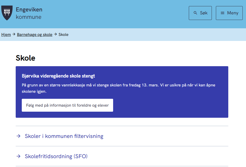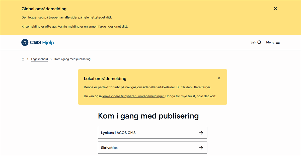 Vises øverst på alle sider. Brukes til viktige beskjeder som alle besøkende bør få med seg.