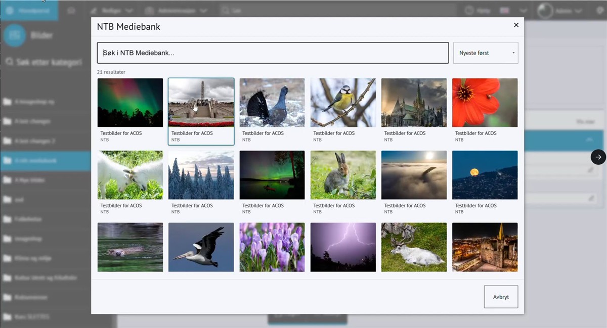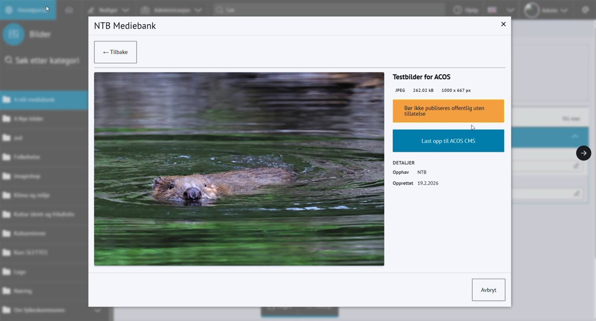 Last opp bilder fra NTB i ACOS CMSSlik fungerer integrasjonen