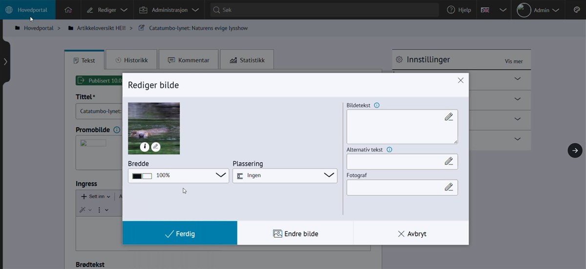Når du laster opp bilder fra Ntb kan du redigere bildet i grensesnittet i CMS, men på måten du er kjent med i NTB: