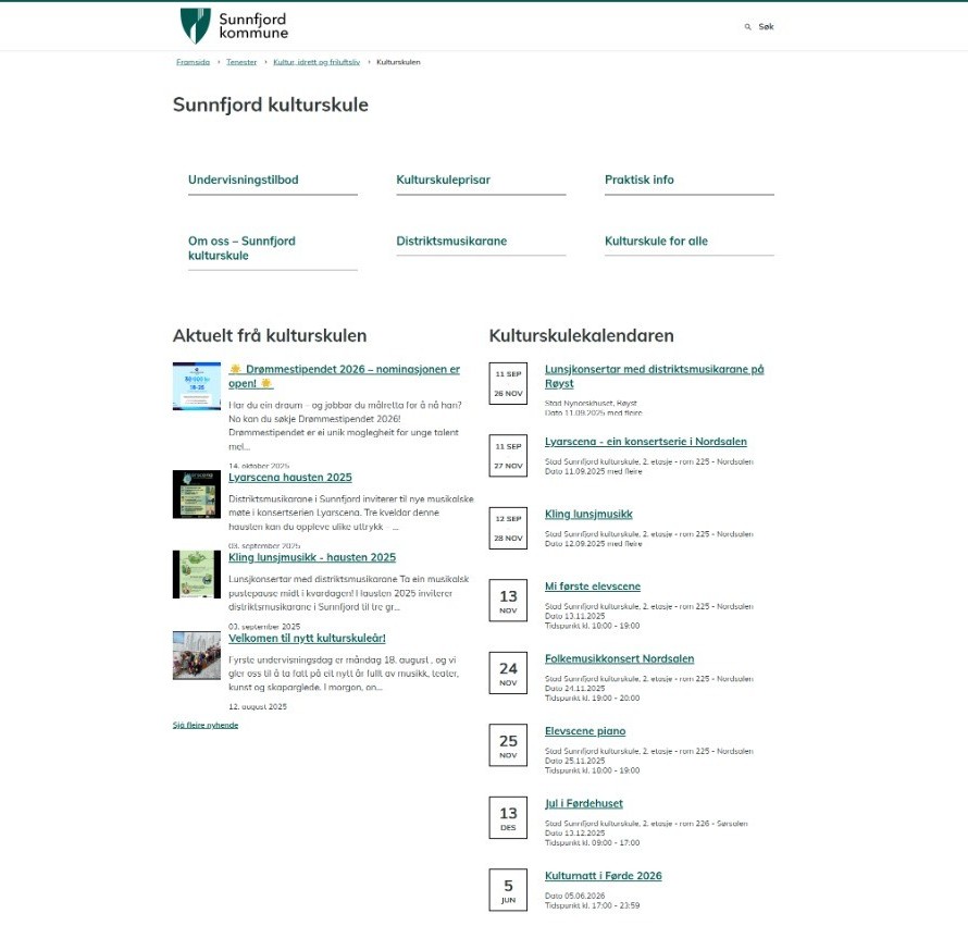 Integrasjon mot SpeedadminMed integrasjonen mot Speedadmin kan du vise kulturskoletilbudet direkte på kommunens nettsted. Alt innhold om kurs, nyheter og kalender hentes automatisk fra Speedadmin og vises i kommunens design. Om integrasjonen Bestill Vis akviteter fra Speedadmin på nettsidenInnholdet fra Speedadmin vises i kommunens designKursene gir treff i søket på nettsidenPå forsiden kan du tilpasse antall nyheter og hendelserSlik fungerer integrasjonenInnholdet fra Speedadmin vises sømløst i nettsidens struktur og stilKurs, nyheter og kalenderhendelser oppdateres automatiskRedaktører slipper å legge inn kulturskoleinnhold to stederDu kan tilpasse knappene på siden, samt justere hvor mange aktueltsaker og kalenderhendelser du vil vise. Se integrasjonen i brukÅlesund kommune - kulturskoleSunnfjord kommune - kulturskoleBamle kommune - kulturskoleUllstein kommune - kulturskole ForsideDu kan tilpasse knappene på siden, samt justere hvor mange aktueltsaker og kalenderhendelser du vil vise. Klikk for stort bilde TransportsideTransportsidene for undervisningstilbudet lages automatisk basert på strukturen dere har laget i Speedadmin.Klikk for stort bilde KurssideKurssidene henter også data automatisk fra Speedadmin. Du kan gjøre tilpasninger på hva som skal vises ut via Administrasjon > Datakilder > Speedadmin kurs.Klikk for stort bilde Administrere integrasjonen i CMS Tilpasse forsidenKlikk på menypunktet KulturskoleRediger overskrifter og lenketeksterBestem antall nyheter eller kalenderhendelserKlikk Lagre Speedadmin-forsideLegge til nytt kursNår du legger til et nytt kurs i Speedadmin må du lage et menypunkt og koble dette til det nye kurset for at det skal komme ut på nettsiden. Første gang ACOS oppretter integrasjonen vil alle kurs vise under menypunkt. Deretter må det lages et menypunkt for hvert nye kurs som legges til. I menyen, klikk på flervalgsknappen (...) bak menypunktet der kurset skal liggeVelg Nytt menypunktGi menypunktet et navn, for eksempel Fiolin, og trykk EnterVelg Annet innholdVelg kategorien der kurset ligger i SpeedadminUnder Eksternt innhold, velg kurset du vil viseKlikk OK, deretter Publiser/LagreVelge hva som vises på kurssideneKlikk Administrasjon → DatakilderVelg Eksternt innhold → Speedadmin kursVelg Ja eller Nei for data du vil vise, for eksempel:Antall søkere på ventelisteLenke til påmeldingKontaktpersoner (navn, bilde, e-post, telefon)Klikk LagreSynkronisere innholdInnhold fra Speedadmin oppdateres automatisk én gang i døgnet.For å oppdatere manuelt:Klikk på menypunktet som viser kurs, nyheter eller kalenderKlikk Synkronisér alleFor å synkronisere én oppføring, klikk (...) → SynkronisérPublisere eller avpublisere nyheterPubliseringsperioden for nyheter og kalenderhendelser styres i Speedadmin, men du kan avpublisere eller publisere i CMS hvis innholdet er innenfor perioden.Klikk på menypunktet NyheterFinn nyheten du vil endreKlikk (...) → Publiser eller AvpubliserVise beskrivelser for kalenderhendelserFor å vise beskrivelser i kalenderhendelser må feltet i Speedadmin være satt til «Kan eksporteres til hjemmeside».I Speedadmin: Gå til Stamdata → Bookingtyper → Arrangement og velg JaI CMS: Gå til Administrasjon → Datakilder → Eksternt innhold > Speedadmin kalenderSkriv inn feltet for beskrivelse (for eksempel Beskrivelse)Klikk LagreOfte stilte spørsmål og feilsøking Nyheten vises ikke på nettsidenSjekk at nyheten har en tittel i SpeedadminKontroller at publiseringsperioden er gyldigJeg ser ikke menyer fra Speedadmin når jeg skal legge til kursDu må ha rettighetene External content og Datakilder.Gå til Administrasjon → Brukere og grupper, velg gruppen og kryss av for Full tilgangKan jeg skjule lenker til påmelding under «Sted»?Ja. Gå til Administrasjon → Datakilder → Eksternt innhold → Speedadmin kurs, og velg Nei under «Vis underkategorier som lenker til kurspåmelding».Kan jeg lage knapp til søknad om plass eller innlogging?Ja. Opprett et menypunkt og velg Lenke til annet innhold → Ekstern lenke. Lim inn kommunens lenke til Speedadmin og publiser menypunktet. PrisFyll ut skjemaet, så sender vi deg et uforpliktende pristilbud.
