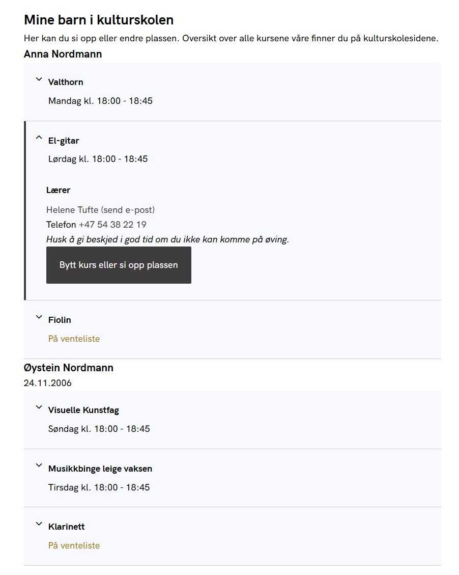 Med tjenesten Mine barn i kulturskolen får innbygger full oversikt over kurstilbudene de har i kulturskolen.