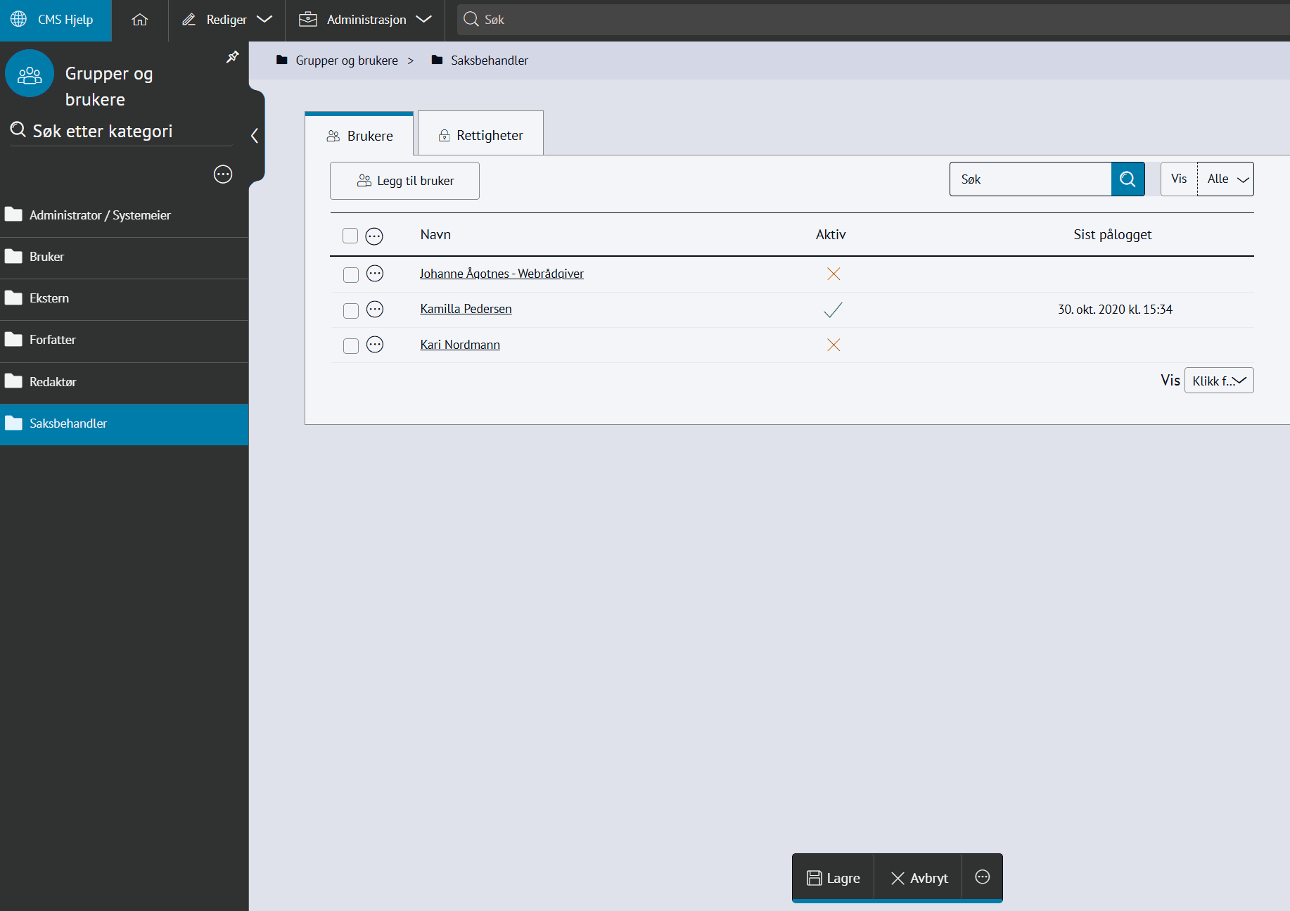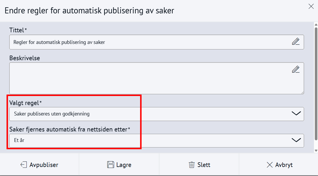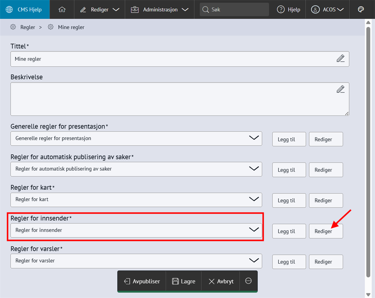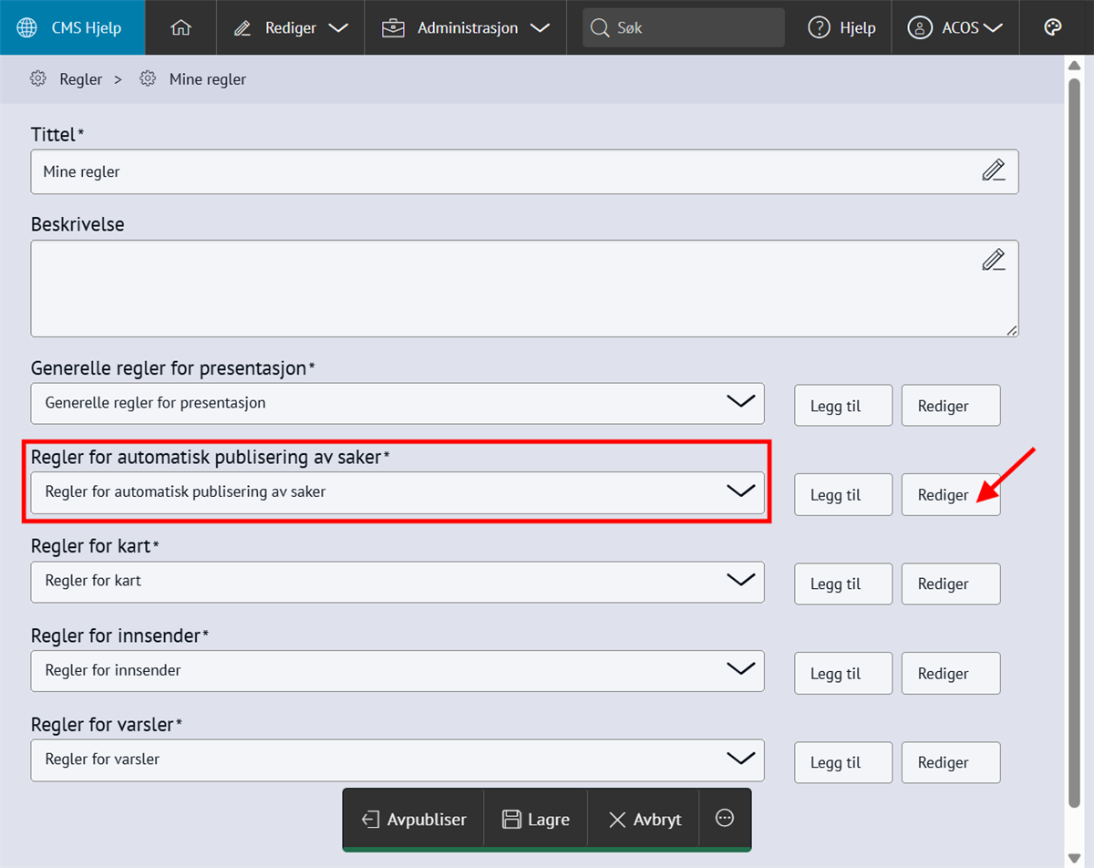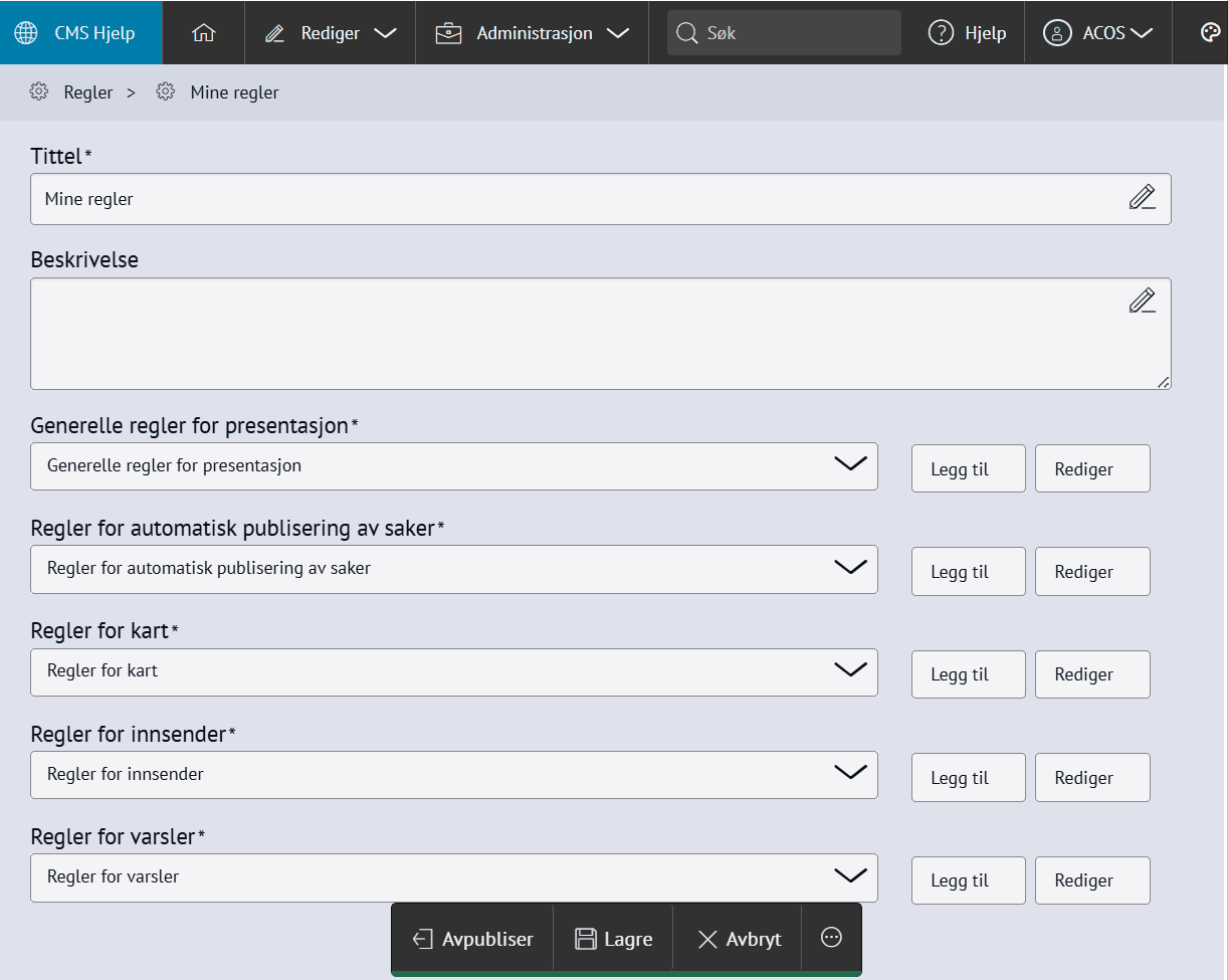 Nabolaget - meld feilMed Nabolaget kan innbyggerne melde inn feil, for eksempel om vei og utemiljø. Modulen styres av regelsett og kategorier, og saker rutes til saksbehandlere med e-postvarsling. Steg for steg Inspirasjon Bestill Sette opp NabolagetNår du setter opp Nabolaget må du gjøre fire steg:Opprett menypunktLag regelsettOpprett kategorier for å melde feilLegg til saksbehandlere 💡 Slik kan nabolaget kan se ut på ditt nettsted 1. Opprett menypunktFørst oppretter du et menypunkt der du ønsker at funksjonen for å melde feil skal skal bo. Klikk på flervalgsknappen (…) og Nytt menypunktNavngi det Meld feilVelg lenketype: Intern lenkeHva vild du lenke til: NabolagetkategoriVelg nabolagetkategori: Meld feilKlikk Lagre og PubliserTips!💡Legg “Meld feil og mangler” under:Kontakt ossVei og kollektivVei, vann og avløpKultur, idrett og fritid… eller andre logiske steder brukeren din går for å melde feil.2. Sette opp regelsettEndre regler, standardtekster, titler og navn på innmeldingsknappene for å tilpasse ditt nettsted.Gå til Administrasjon → pil-ikon på Nabolaget → ReglerÅpne Mine regler Klikk Legg til på alle feltene og RedigerKlikk Lagre og Publiser3. Opprett kategorier for å melde feilNå du har lagret reglene kan du lage knappene for hva brukerne kan melde inn feil på, og bygge en navigasjonsside for dette. Gå til Administrasjon → NabolagetUnder Meld feil finner du tre forhåndspubliserte knapperTrykk på flervalgsknappen(…) og Ny kategori for å opprette flere kategorier eller underkategorier for innmeldingUnder innstillinger, sjekk at Regler er knyttet til regelsettet Mine reglerKlikk Lagre og Publiser4. Legg til saksbehandlereAlle saksbehandlere må legges til som en gruppe i CMS først, deretter kan du legge dem til i Nabolaget og varsle dem. 1. Samle saksbehandlere i en gruppe og gi tilgangGå til Administrasjon → Grupper og brukereTrykk på flervalgsknappen (…) og Ny gruppe Navngi gruppen Saksbehandlere Legg til bruker og søk opp navnetKlikk OkTrykk på RettigheterGi gruppen Full tilgang på Nabolaget og Nettsted. Andre rettigheter kan stå til Ingen.Klikk fort stort bilde2. Legg til saksbehandlereGå til Administrasjon → NabolagetVelg kategorien Meld feilTrykk på flervalgsknappen (…) på kategorien og Saksbehandlere → Legg til saksbehandlerSøk opp saksbehandlerSend varsler: Huk Ja hvis saksbehandler skal bli varslet på e-postLegg til på underliggende kategorier hvis saksbehandler skal saksbehandler alle kategoriene under den du har markertOppdater på underliggende kategorier hvis (……………………………..)Klikk OkKlikk for stort bilde Obs! Ikke bli forvirret om du ikke ser saksbehandlerne du har lagt inn med det samme, og kun en tilbakeknapp. Du finner dem ved å trykke på flervalgsknappen (…) og Saksbehandlere. 3. Varsle saksbehandlereSjekk at den generelle varslingen er skrudd på:Gå til Administrasjon → pil-ikon på Nabolaget → ReglerÅpne Mine regler Under Regler for varsler, klikk RedigerHuk av Varsle saksbehandlere ved opprettelse av nye sakerKlikk LagreKlikk for stort bildeSjekk at varslingen per saksbehandler er skrudd på:Gå til Administrasjon → NabolagetVelg kategorien Meld feilTrykk på flervalgsknappen (…) på kategorien og Saksbehandlere Åpne saksbehandlerSe at Send varsler er skrudd påKlikk for stort bildeHurtigguide for Nabolaget Tittel og ingressKlikk for stort bildeEndre tittel på sidenGå til Administrasjon → NabolagetHøyreklikk og endre navn på menypunktKlikk for stort bildeKlikk for stort bildeKlikk for stort bildeEndre undertittelGå til Administrasjon → pil-ikon på Nabolaget → ReglerÅpne Mine reglerKlikk Rediger på Generelle regler for presentasjonEndre feltet Overskrift på startsideKlikk for stort bildeKlikk for stort bildeEndre ingressGå til Administrasjon → pil-ikon på Nabolaget → ReglerÅpne Mine reglerKlikk Rediger på Generelle regler for presentasjonEndre feltet Informasjonstekst på startsideKlikk for stort bildeKlikk for stort bildeEndre spørsmålGå til Administrasjon → pil-ikon på Nabolaget → ReglerÅpne Mine reglerKlikk Rediger på Generelle regler for presentasjonEndre feltet Overskrift over knapper på startsideKlikk for stort bildeKlikk for stort bildeFlere kategorier for innmeldingKlikk for stort bildeSlik lager du flere kategorier for innmelding:Gå til Administrasjon → NabolagetUnder Meld feil endrer du navn på knappene Trykk på flervalgsknappen(,,,) og Endre tittelKlikk for stort bildeFlere knapper under "Meld inn feil" og "Se innmeldte skjema"Klikk for stort bildeFørst lager du lenkene du vil vise:Gå til Administrasjon → LenkerKlikk på flervalgsknappen(…) og opprett kategori NabolagetKlikk på Ny lenke og legg til det du vil viseSå kobler du lenkene til nabolagetGå til Administrasjon → pil-ikon på Nabolaget → ReglerÅpne Mine reglerKlikk Rediger på Generelle regler for presentasjonFinn feltet Ekstra lenker som vises på knapper for startsideHent opp lenkekategorien NabolagetKlikk for stort bildeKlikk for stort bildeAutomatisk publisering av saker og levetidGå til Administrasjon → pil-ikon på Nabolaget → ReglerÅpne Mine reglerKlikk Rediger på Regler for automatisk publisering av sakerVelg om saker publiseres uten godkjenning eller må godkjennesVelg hvor lenge en sak vises på nettsiden: et døgn, en uke, en måned, et år eller aldriKlikk LagreKlikk for stort bildeKlikk for stort bildeStartlokasjon på kartetGå til Administrasjon → pil-ikon på Nabolaget → ReglerÅpne Mine reglerKlikk Rediger på Regler for kartZoom til ønsket utsnitt og klikk Lagre/PubliserKlikk for stort bildeKlikk for stort bildeObligatorisk med kontaktinfoGå til Administrasjon → pil-ikon på Nabolaget → ReglerÅpne Mine reglerKlikk Rediger på Regler for innsenderHuk av de tre feltene Klikk for stort bildeKlikk for stort bildeBehandle sakerMotta og tildeleSaksbehandler mottar e-post med lenke til saken i CMSKlikk på lenk