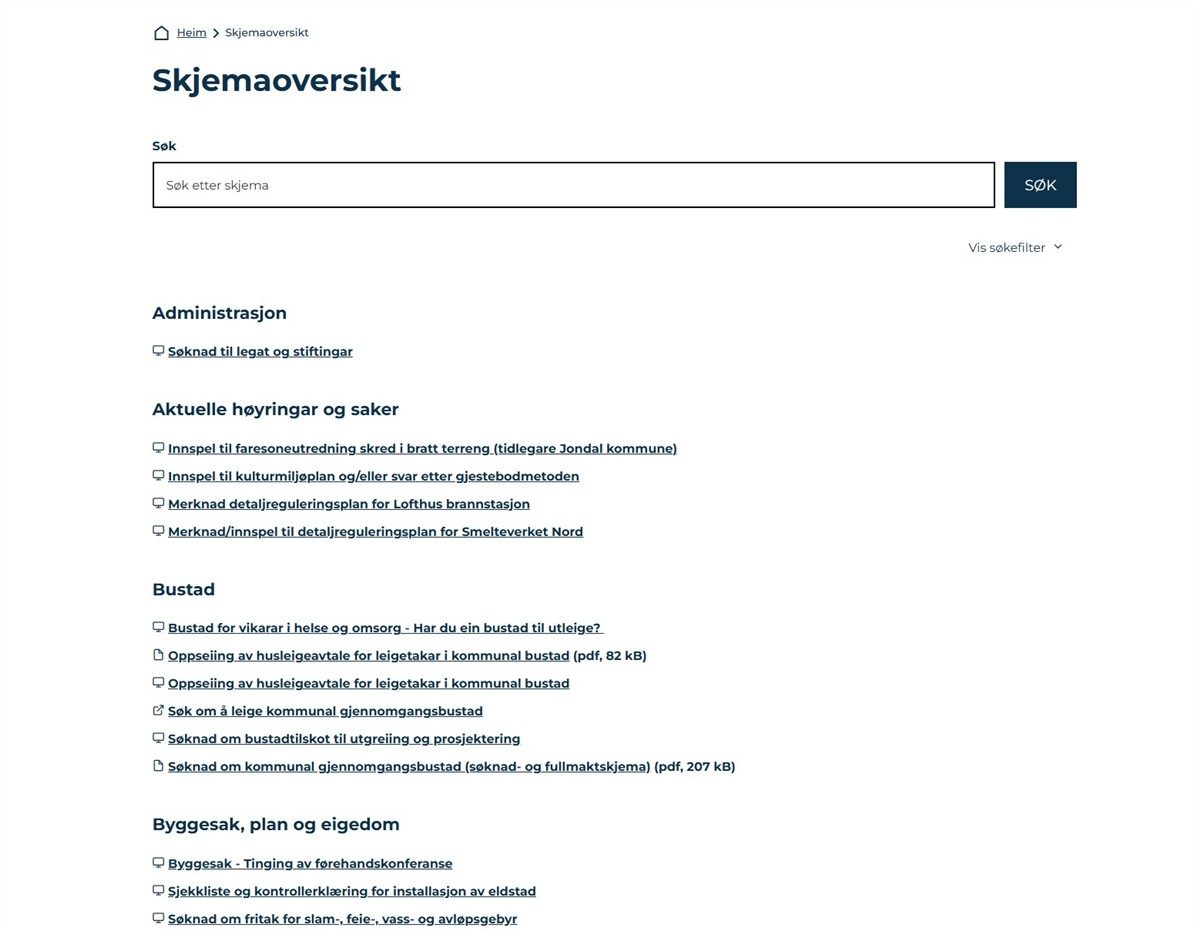 Vis alle publiserte skjema innenfor en spesifikk kategori.