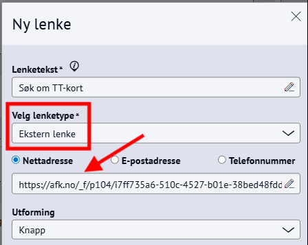 - Internlenke til skjema (ikke til fil eller som ekstern lenke)