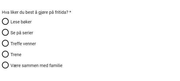 Skjemaet er en samtale mellom deg og brukeren i form av spørsmål og svar.